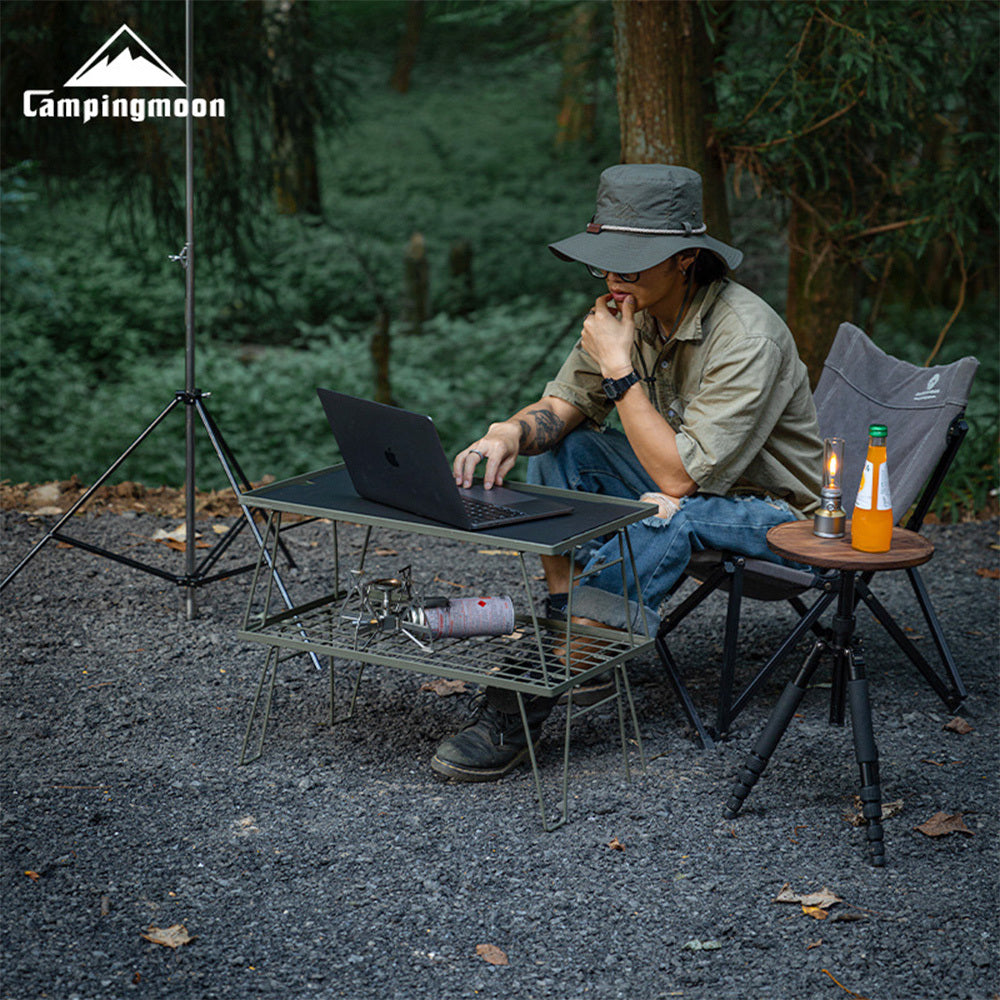 Introducing the Campingmoon Ultralight Foldable Camping Table, a versatile and durable solution for all your outdoor and indoor needs. . Perfect for organizing your camping gear, it can hold cookware, cooler bags, water containers, and even hot items like pots or stoves. Its adaptable design allows it to serve as a tea table, side table, grill table, or camping table, making it a must-have for any setting.