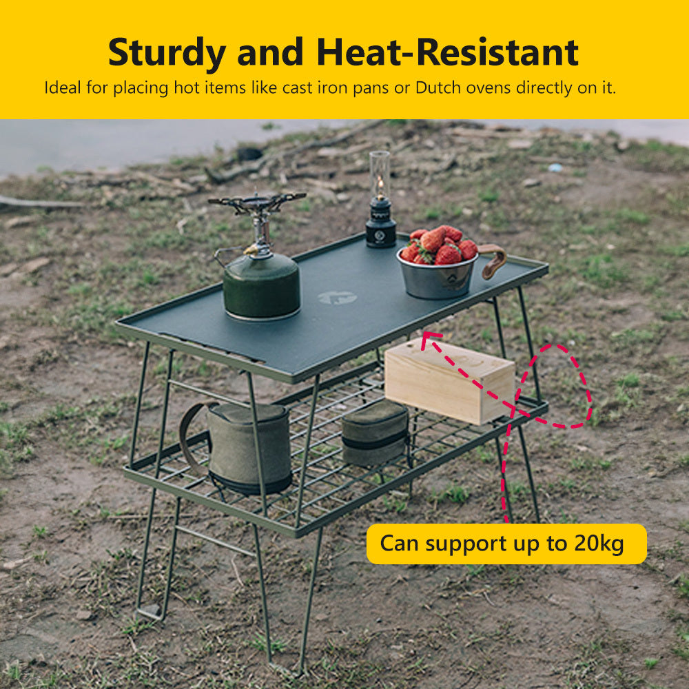 Sturdy & Heat Tolerance: Despite its compact size, this table is robust enough to support up to 66 lbs. It can handle hot items like cast iron pans, Dutch ovens, and pots directly on its surface, making it perfect for cooking and serving.