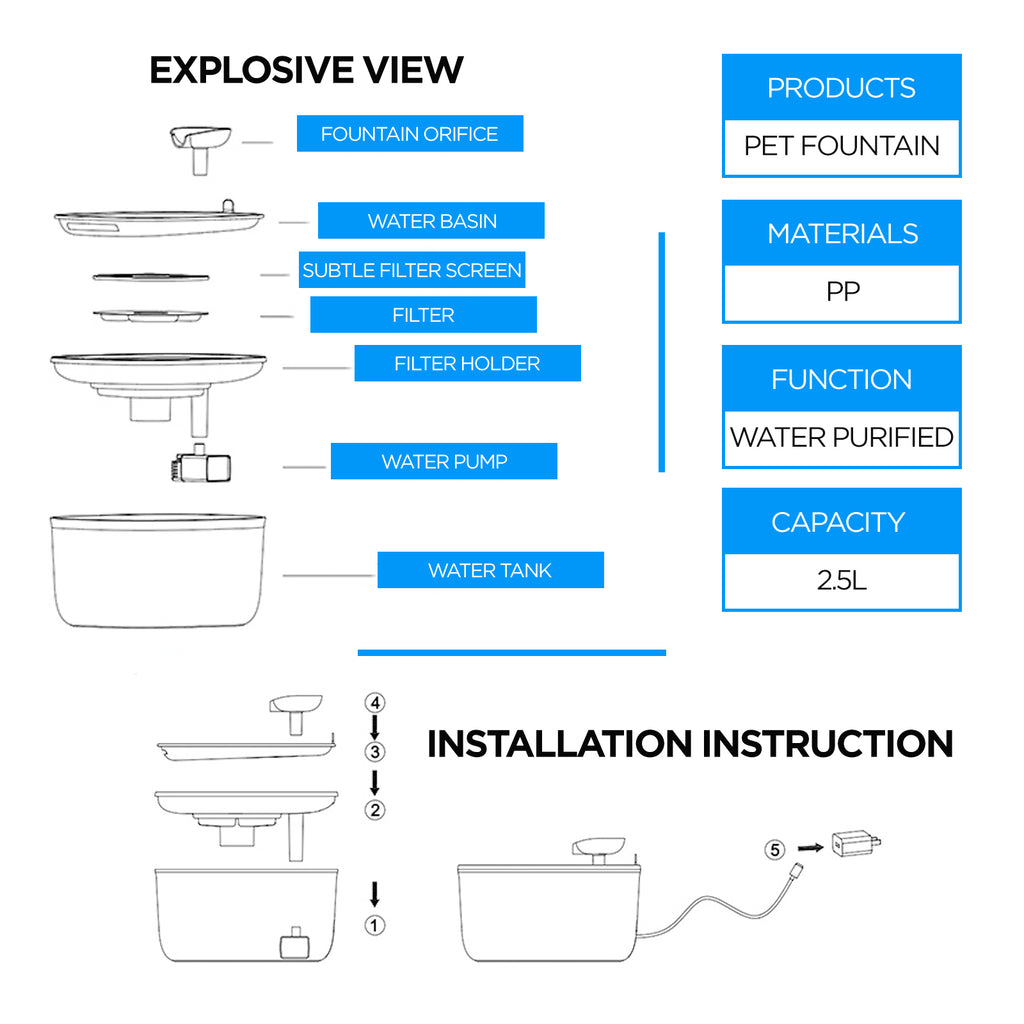 Let your feline family members indulge in the joy of fresh, flowing water, and witness their contentment as they lap up the goodness. Bring home our 2.5L Cat Drinking Fountain today and let the hydration adventure begin!