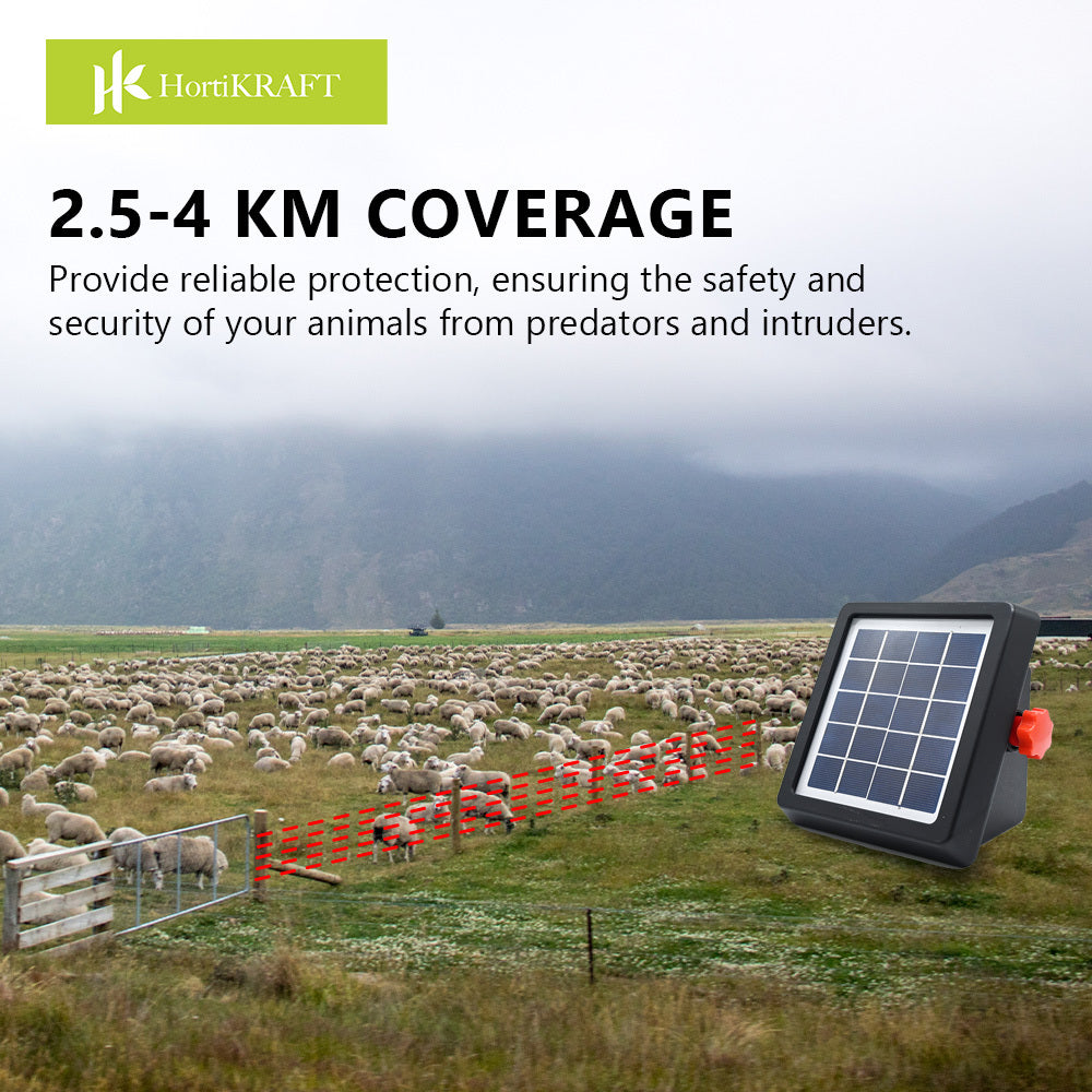 Introducing the HORTIKRAFT 2.5-4KM All-in-one Solar Fence Energizer Electric Charger, your ultimate solution for safeguarding cattle, horses, and sheep on your farm. Powered by solar energy, this innovative charger ensures continuous protection for your livestock, even in remote areas. With its advanced technology, it delivers efficient electric pulses, covering up to 4 kilometers of fencing.