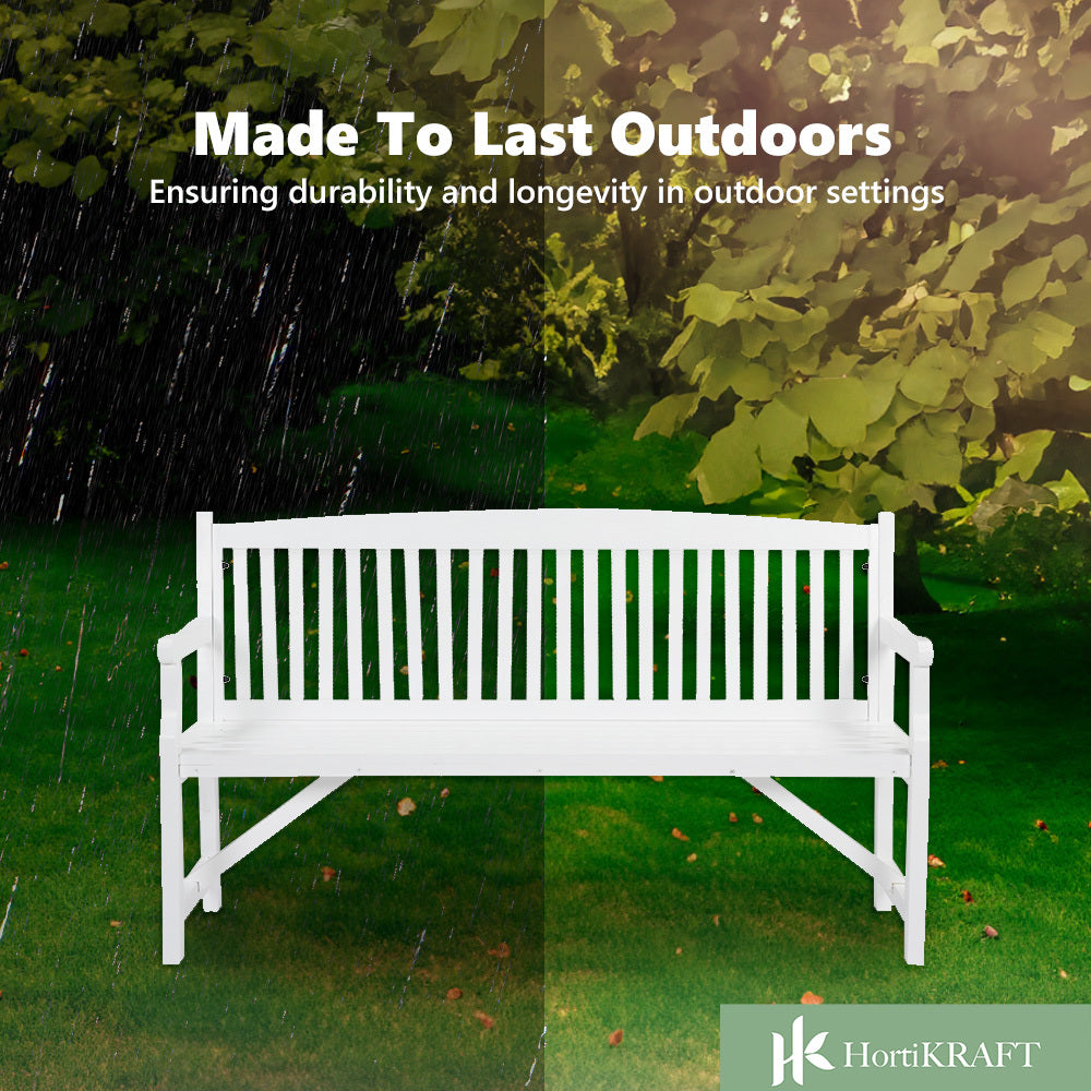 Introducing the HORTIKRAFT Wooden Garden Bench, the perfect addition to your outdoor furniture collection. This versatile bench is designed to enhance any patio, garden, porch, or backyard setting. Crafted from high-quality natural wood, it combines durability and aesthetic appeal, making it an ideal choice for any outdoor space.