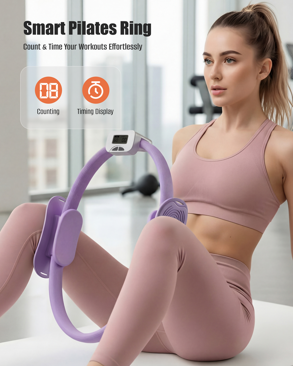 MaxU Pilates Ring Set for Women, Home Workout Yoga Equipment Kit with Counting Pilates Ring, Yoga Ball, Yoga Socks, Glute Resistance Bands, Long Pull Band & Storage Bag Purple