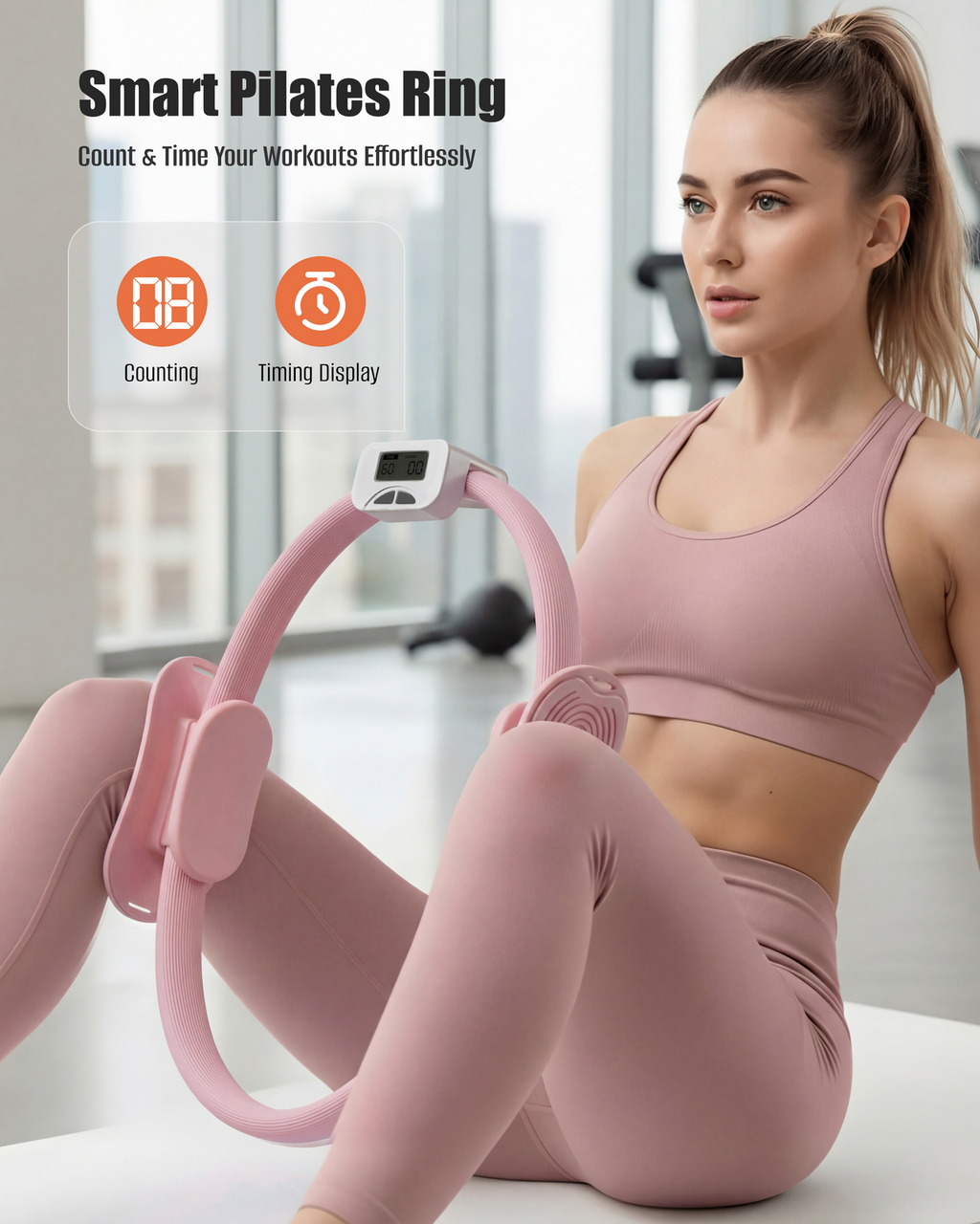 MaxU Pilates Ring Set for Women, Home Workout Yoga Equipment Kit with Counting Pilates Ring, Yoga Ball, Yoga Socks, Glute Resistance Bands, Long Pull Band & Storage Bag – Pink