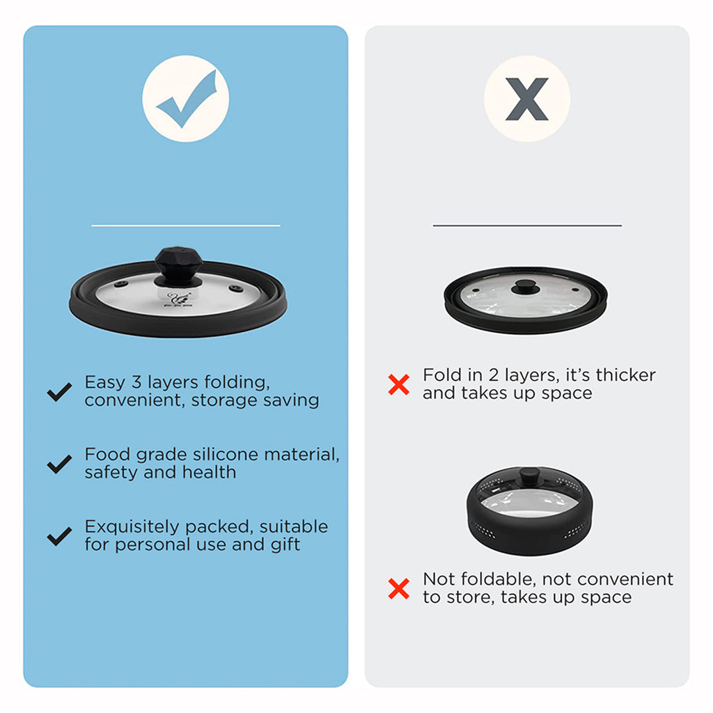 Introducing the ADIVO Foldable Microwave Splatter Cover and Pan Lid - the ultimate kitchen essential for mess-free cooking and reheating! Made with food-safe and durable tempered glass and silicon, this cover ensures the safety of your meals while protecting your microwave from unwanted splatters.