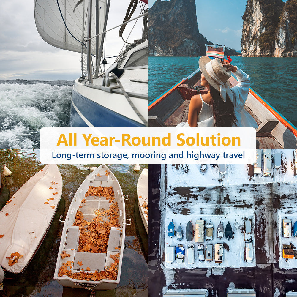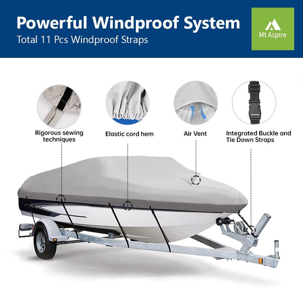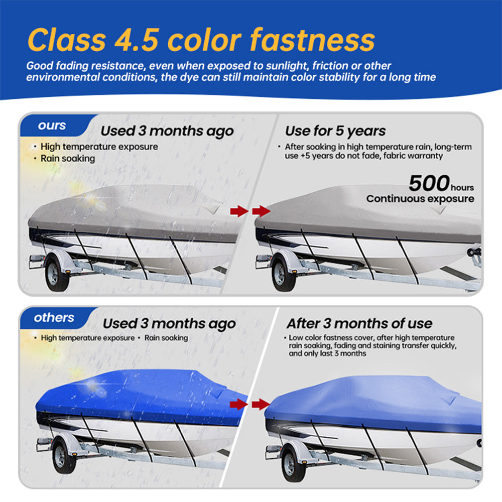 - High-Quality Material: Made from 300D Polyester with a PU coating, this boat cover is built to last. The material is UV-resistant and mildew-resistant, ensuring your boat stays protected and the cover remains in excellent condition over time.