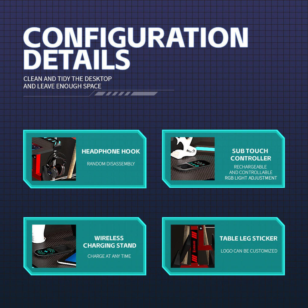 The Viviendo Gaming Desk Computer Table is going to lift your gaming with the perfect addition of mood lighting and Wireless Phone charging! Place your Qi enabled phone on the chaging zone of the desk to keep it fully charged, as you get your gaming session going!