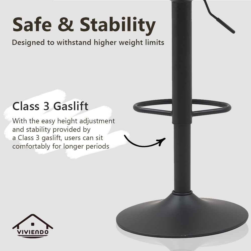 Perfect for kitchens, home bars, or dining areas, these adjustable stools combine convenience with a sleek design, blending seamlessly with various interior styles. Add sophistication and versatility to your space with the Viviendo Adjustable Swivel Kitchen Bar Stools, where comfort meets modern elegance.