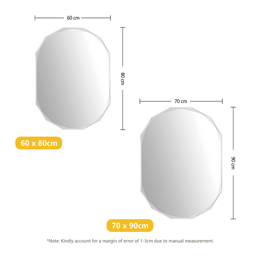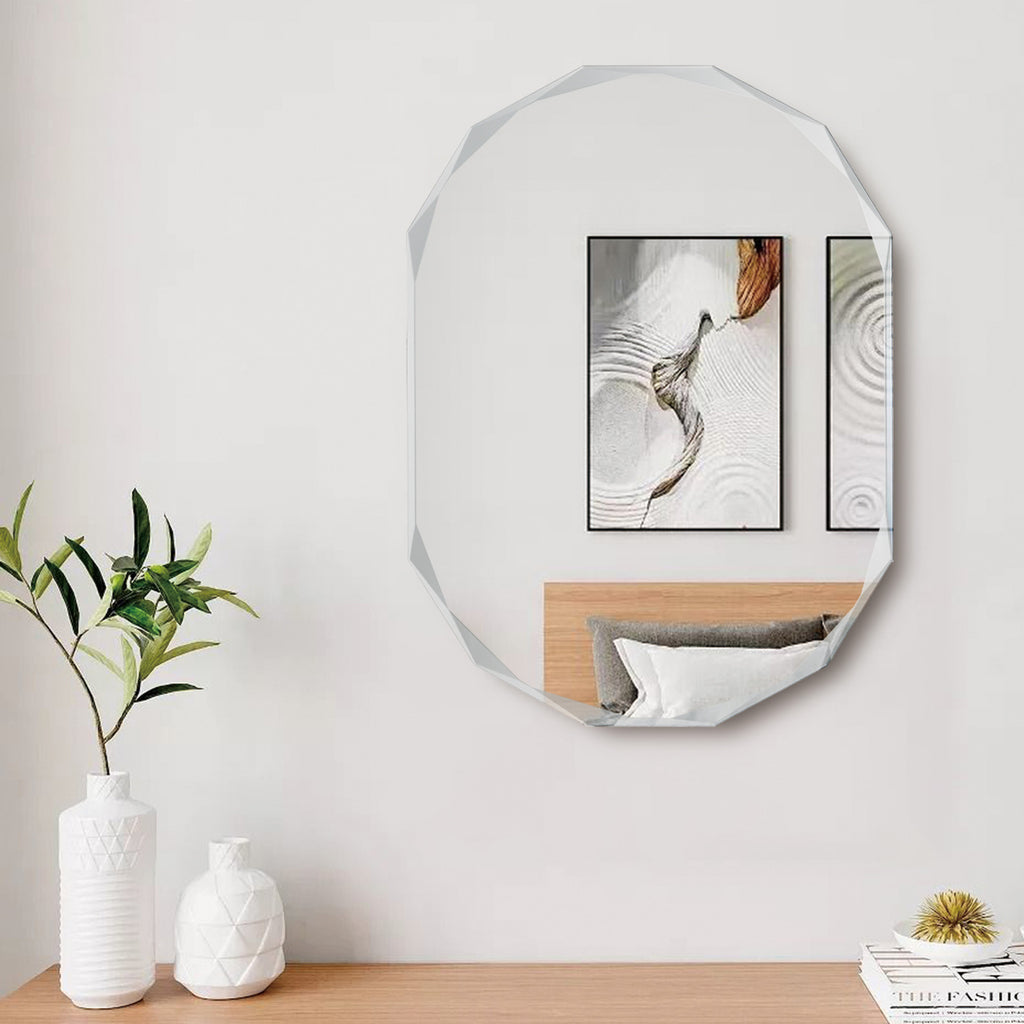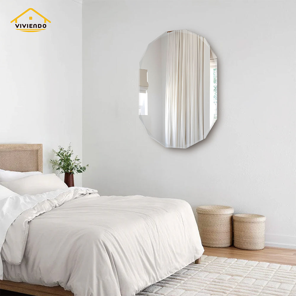 Elevate your home decor with the Viviendo Crystalline Mirror with Beveled Edge. This stunning mirror adds sophistication and a touch of luxury to any room, whether it's in your bathroom, bedroom, or living space. Its frameless scalloped design creates a clean, modern look that blends seamlessly with various interior styles. The mirror features a high-quality beveled edge that reflects light from different angles, enhancing the brightness and depth of your room. Its shatterproof construction ensures safety and durability, making it a practical choice for households. Available in two versatile sizes, 60 x 80 cm and 70 x 90 cm, the Viviendo Crystalline Mirror fits perfectly into a variety of spaces. Whether you're getting ready for the day or simply enhancing the ambiance of a room, this mirror offers timeless elegance and superior functionality.