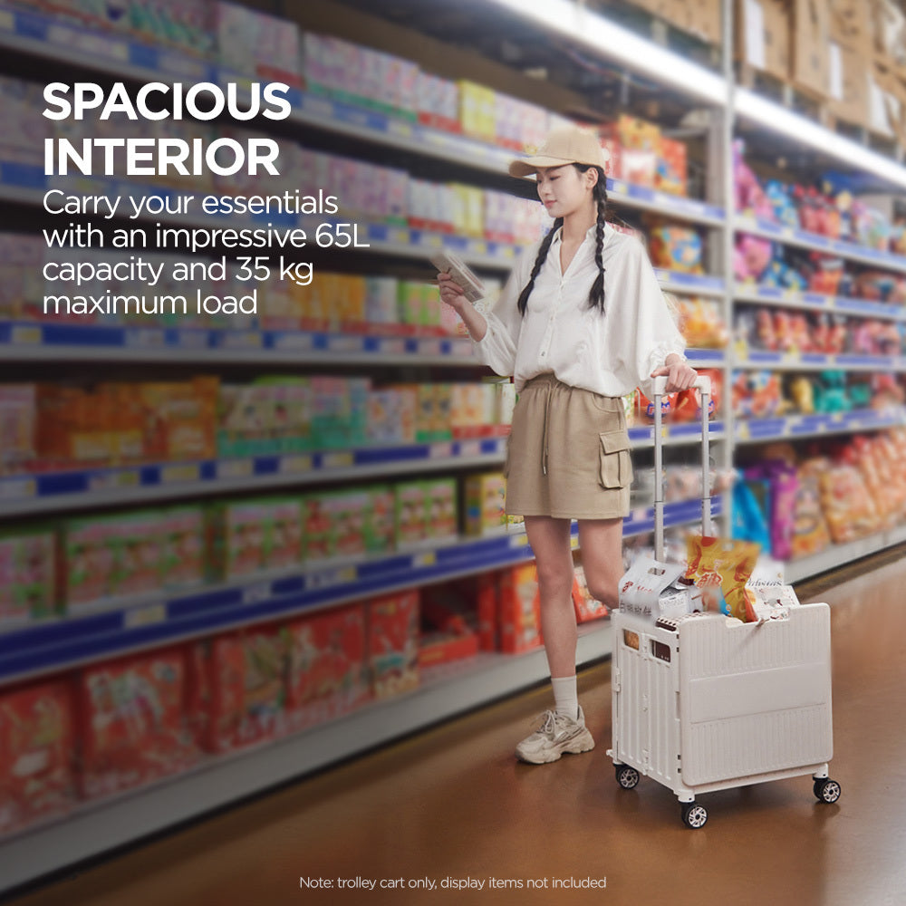 The cart's spacious grocery basket offers ample storage space for all your shopping needs and is easy to clean, maintaining a hygienic shopping experience. Whether you're a busy parent, a senior citizen, or simply looking for a hands-free shopping solution, our Folding Shopping Trolley Cart is the ultimate practical companion. Simplify your shopping trips and eliminate the hassle of heavy bags.