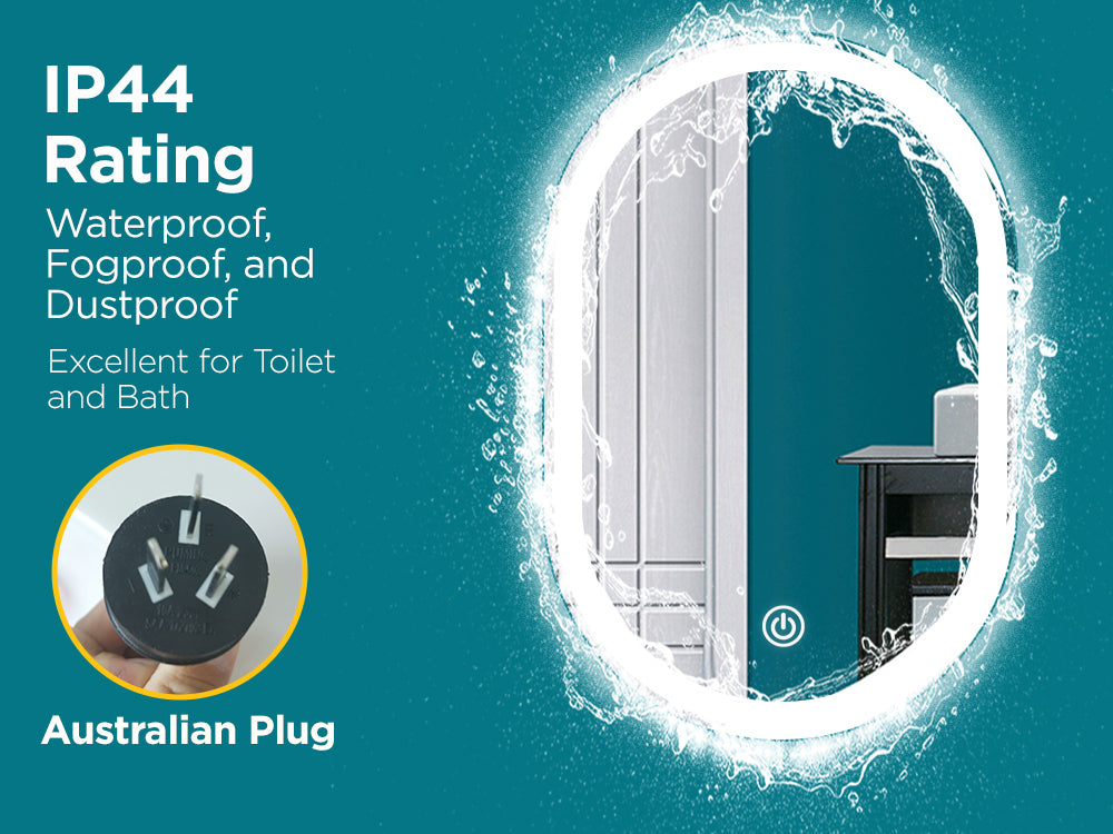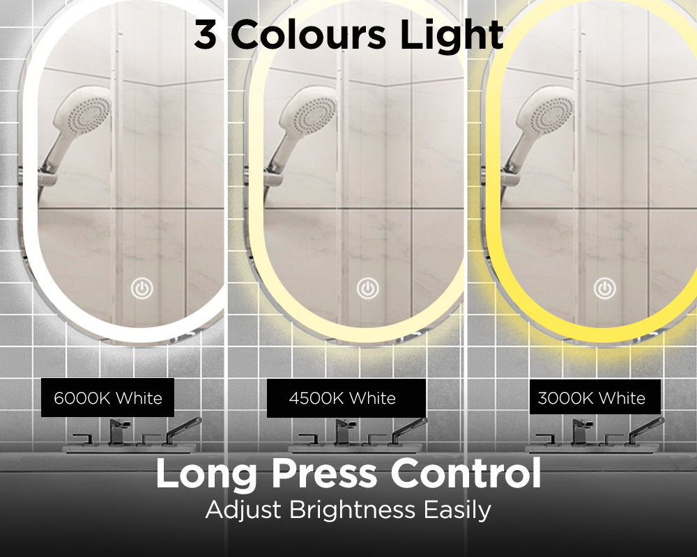 - Smart touch switch that turns LED light on and off. Gently tap on the surface of the mirror to operate this feature.