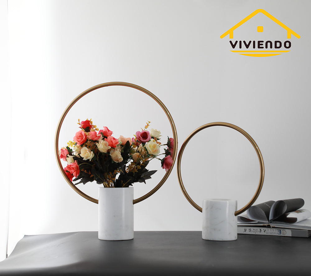 Viviendo Marble Stone & Iron Floral Encirclement Flower Vase Ornament - Small