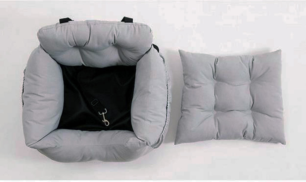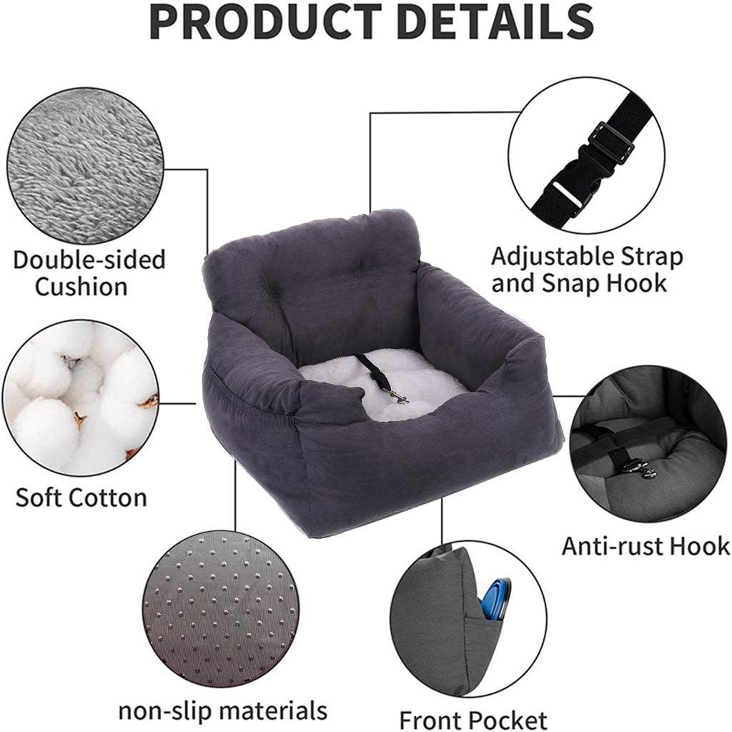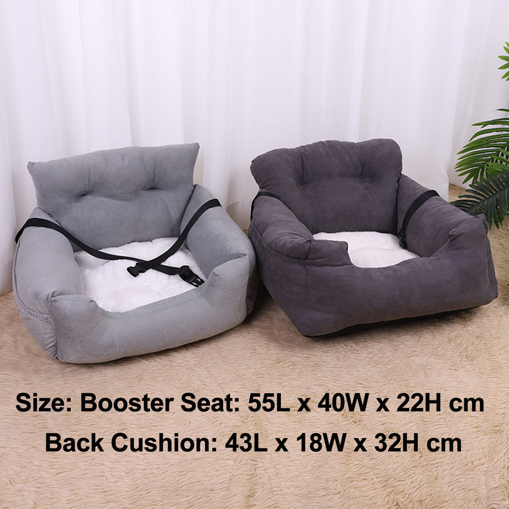 Crafted with premium materials, this dog car booster seat is designed to withstand the demands of travel. The durable construction and reinforced sides offer stability and support, providing your pet with a secure spot to relax during the journey. The grey color adds a touch of elegance that complements any car interior.